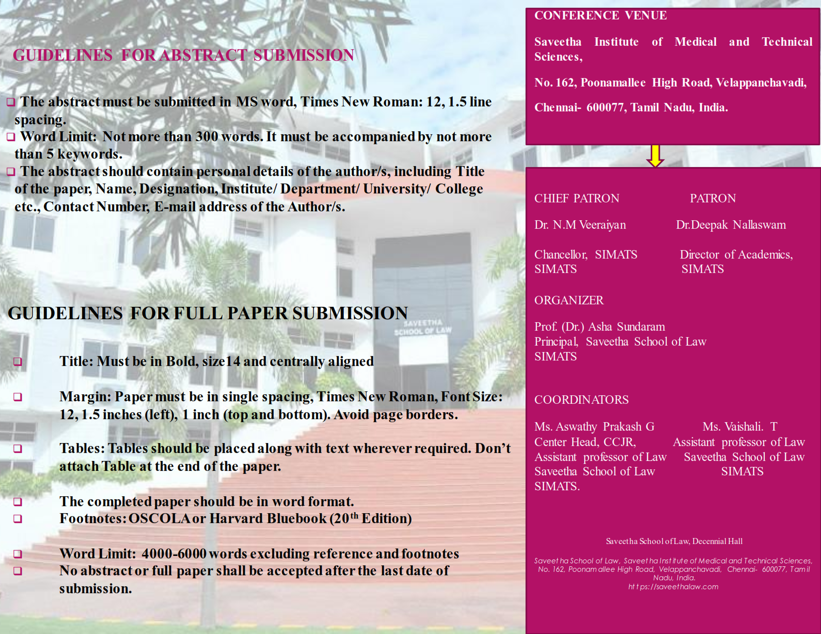 📌 VENUE: Conference Hall, Saveetha School of Law , SIMATS.