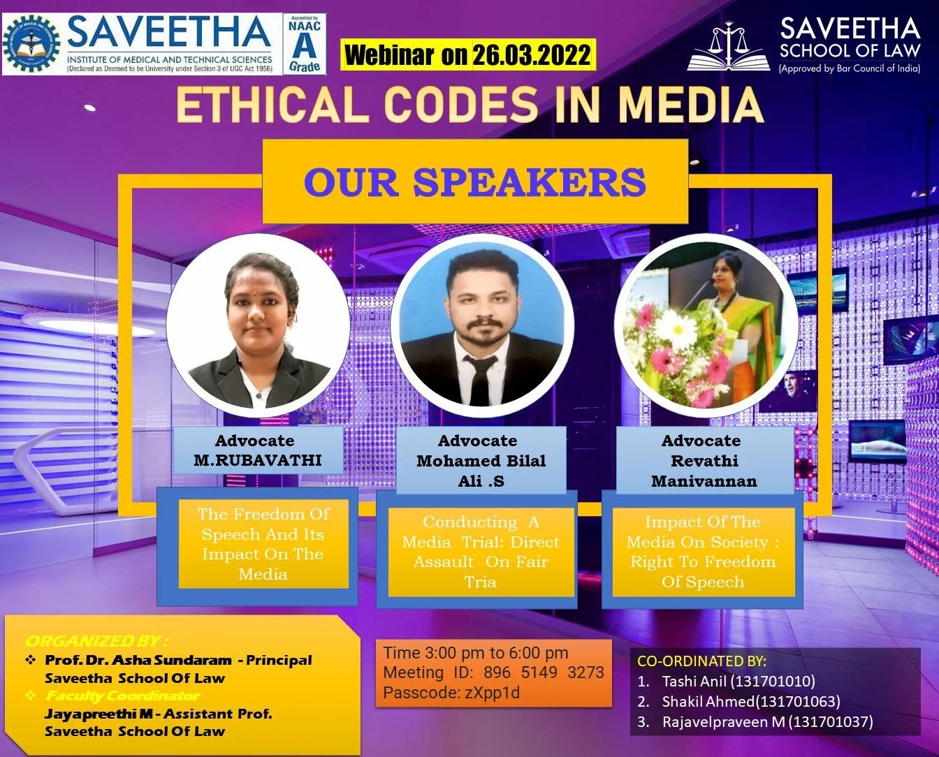 We take immense pleasure in inviting you all to a webinar on "ETHICAL CODES IN MEDIA "