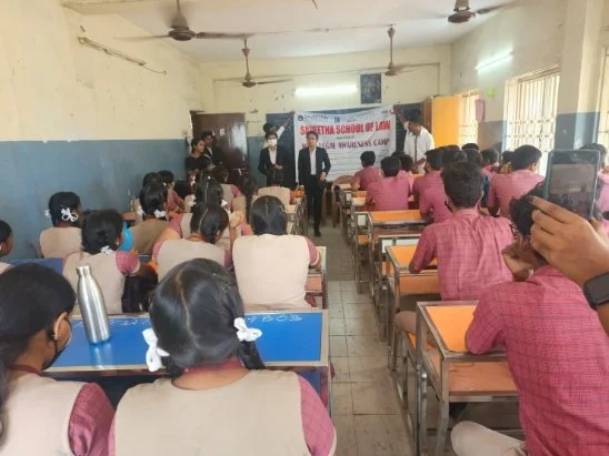 Department of Management, Saveetha school of law conducted a legal awareness camp for the students of Maharishi Vidya Mandir School, Aynavaram on the 21st of February, 2023. The students of saveetha raised awareness about various legal concepts and ideologies. Some of the topics covered were gender inequality, child labour, fundamental rights, Protection of children against sexual offences and laws relating to motor vehicles. The students of saveetha also conducted various activities to interact with the audience and to understand their perspectives and awareness levels. The students of Maha Rishi felt that the camp was highly informative and educational.