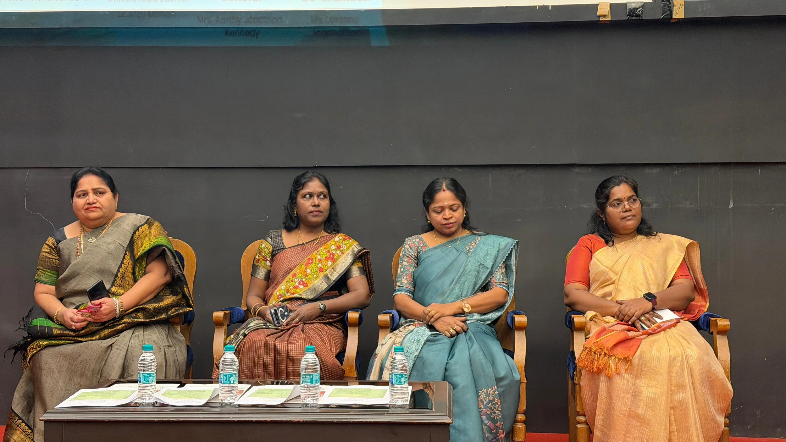 The conference was distinguished by the presence of four eminent women resource persons. The keynote address was delivered by Dr. Dilshad Shaik, Professor and Dean, School of Law, Sathyabama Institute of Science and Technology, who offered a powerful academic framework for understanding gendered social burdens. The technical sessions were enriched by Dr. P. Brinda from the School of Excellence in Law, Tamil Nadu Dr. Ambedkar Law University; Dr. E. Gomathi, Advocate, Madras High Court; and Ms. Kalyananthy Satchithanantham, Member-Educationist, Government of Tamil Nadu, whose insights bridged law, policy, and grassroots realities.