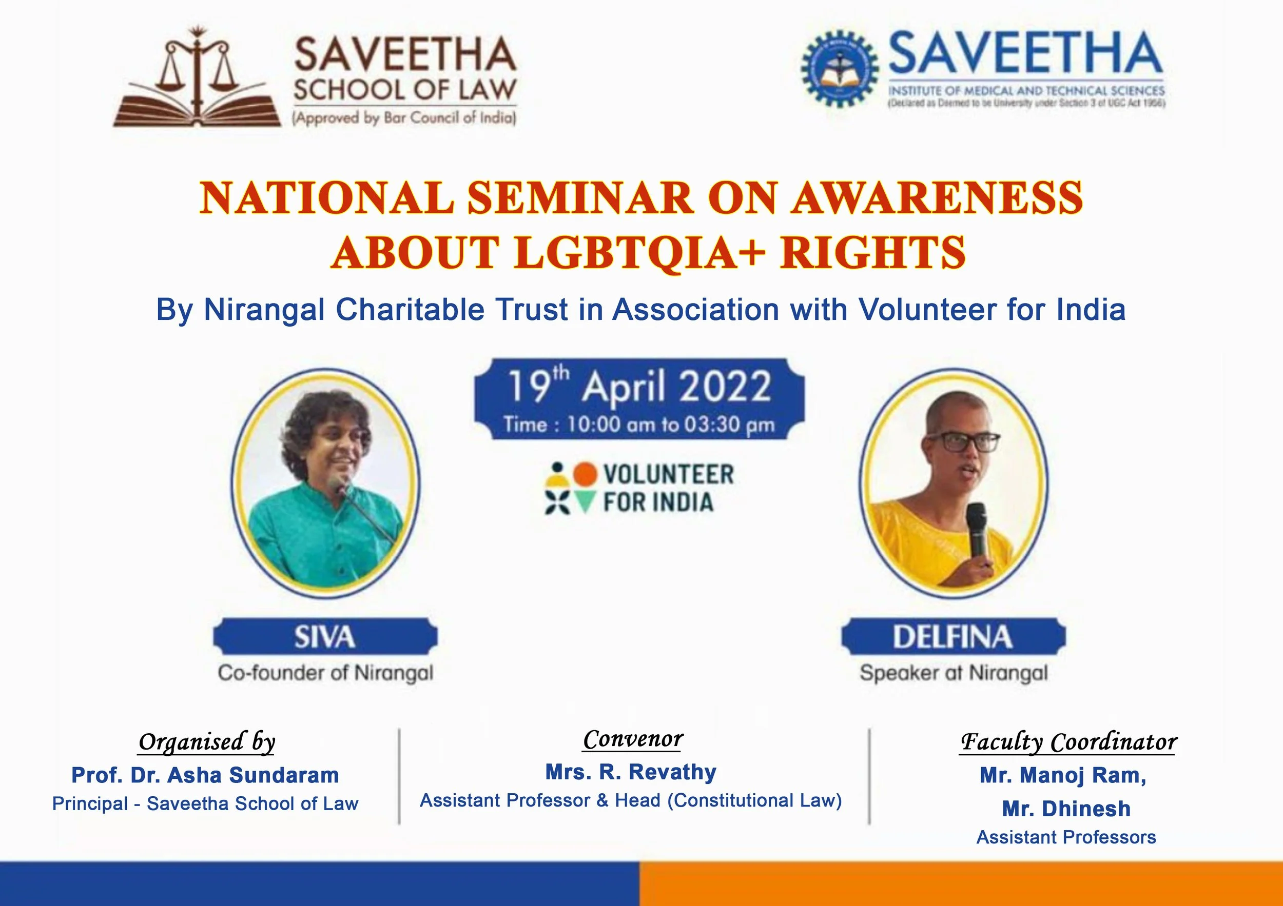 Dept of Constitutional law, Organised a seminar on the topic Awareness on LGBTQIA+ Rights In Association With Volunteer For India (Pan India Ngo), Nirangal Foundation. It was an interesting session about the understanding of life struggles faced by LGBTQ community people. The Resource persons has demonstrated the session with live activities and students were made involved in the session. Students also took part enthusiastically. Our Students took part and acted in Spontaneous skit . The rights of LGBTQIA persons had been explained elaborately. Irrespective of current laws the hardships faced by the community also has been explained through the skit.