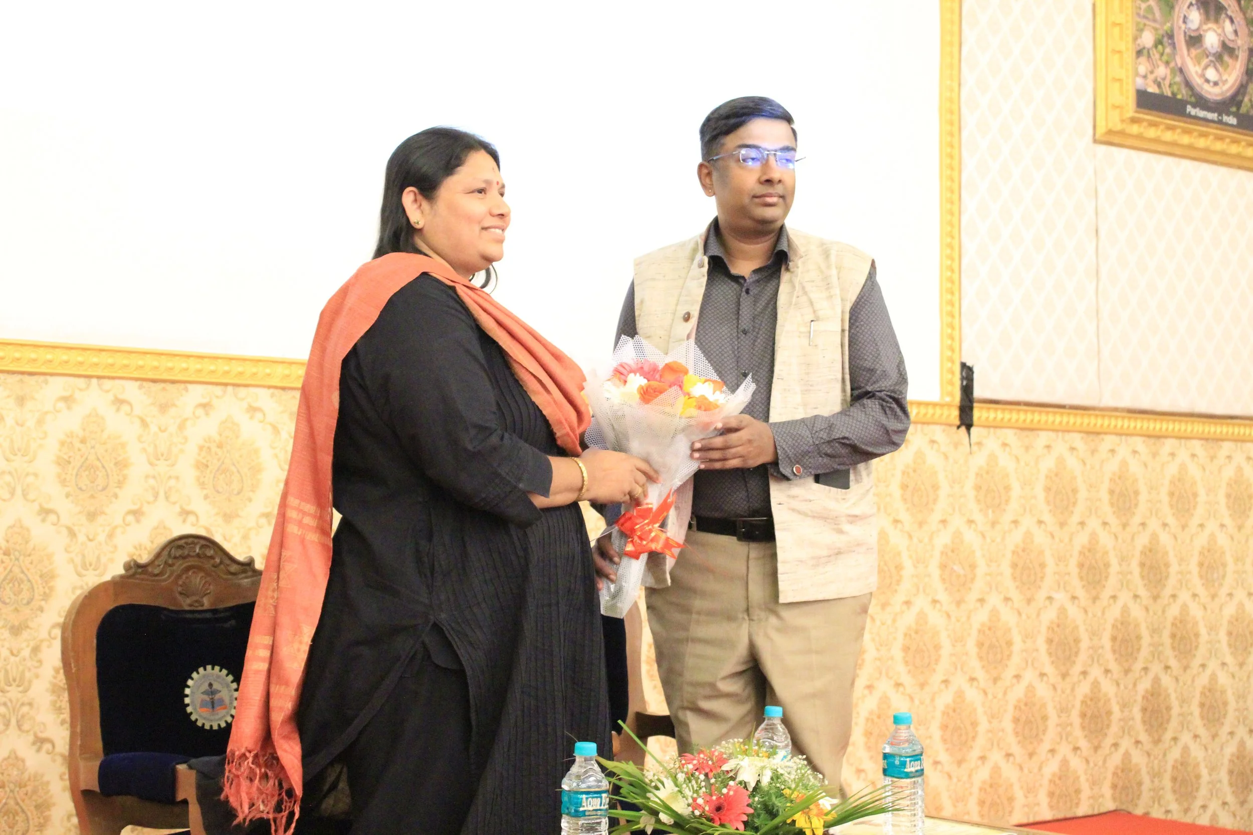 Midday sessions featured Dr. Priti Jagwani (Aryabhatta College, DU), who discussed the challenges of mainstreaming IKS in modern education, and Dr. Preety Choudhari (BBAU, Lucknow), who spoke on inclusive human-environment connections in Indian traditions. Dr. Dipesh Vinod Katira added linguistic depth with his lecture on Sanskrit and modern Indian language evolution, while Mr. Maniprasad Nirola, from Bhutan, brought an international perspective by presenting Bhutan’s approach to biodiversity conservation through traditional knowledge.