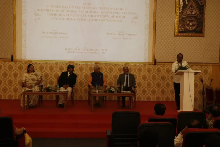 The International Conference on “Integration of Indian Traditional Knowledge Systems: Emerging Challenges and Opportunities in Law, Economy, Science, and Environment” commenced with great fervor at the Heritage Guild Hall, Saveetha School of Law (SSL), Chennai. The venue witnessed an extraordinary confluence of scholars, researchers, and practitioners from across India and abroad, united by the common vision of exploring the relevance of Indian Knowledge Systems (IKS) in modern disciplines.