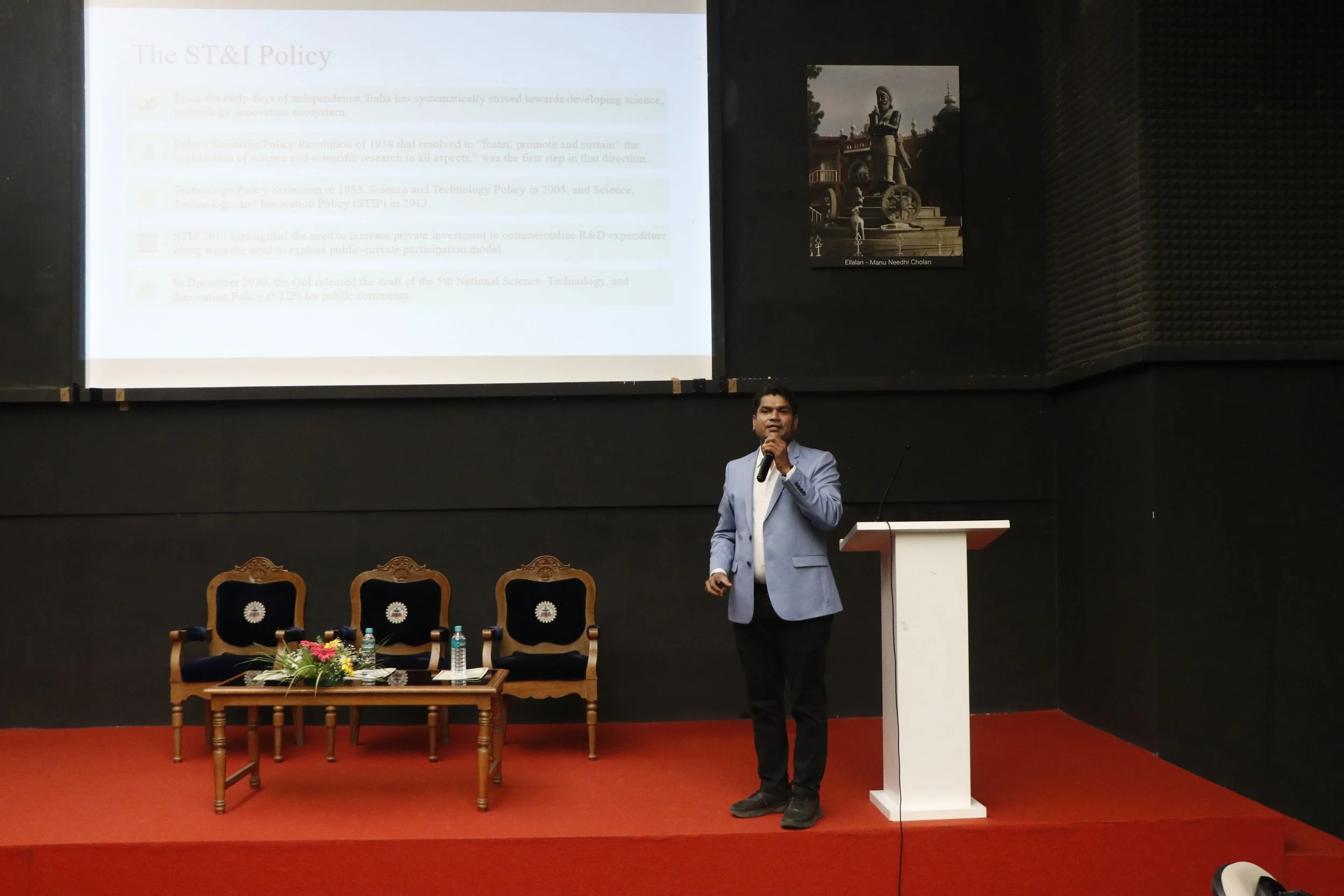 Next, Prof. Nalin Bharti (IIT Patna) explored Intellectual Property Rights and Traditional Knowledge, particularly India’s struggle for protection at global forums like WIPO. He stressed the urgency of legislative reforms and regional documentation for safeguarding indigenous assets.
