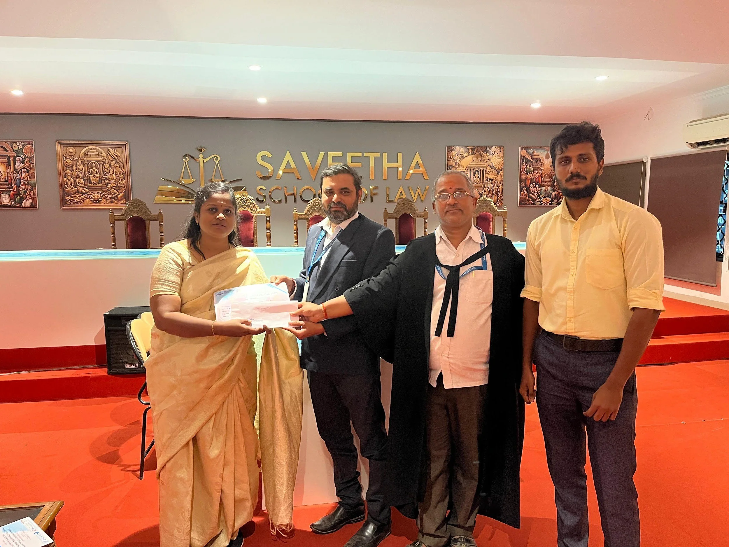 The Department of Labour Law conducted a National Seminar on the topic “Workplace Inclusivity and Labour Rights of Transgender Persons under the New Labour Codes” on 30 December 2025, which unfolded as an engaging and thought-provoking academic event, marked by open dialogue and active participation. Three resource persons addressed the gathering by weaving together legal frameworks, personal narratives, and the battles they faced to gain recognition in society. Ms. Agni Pradeep, transwoman, writer, poet, and queer educator, opened the discussion by reflecting on workplace dignity and inclusion through her lived experiences in education, literature, and theatre, drawing attention to how creativity and identity intersect with labour rights. Ms. M. Mahesha Riti, Advocate and Research Scholar, provided a legal and academic lens, explaining the relevance of the new labour codes to transgender employment, while highlighting systemic barriers and the need for institutional accountability. Mrs. R. Nageswari, transgender activist, grounded the session in advocacy practice by sharing her work in legal assistance, awareness programmes, and community mobilisation aimed at securing enforceable rights for transgender persons. The session was notably interactive, with students actively engaging the speakers through questions, reflections, and scenario-based discussions. The resource persons responded with candid insights, encouraging empathy, legal awareness, and social responsibility among future professionals. The seminar, presided over by Dr. S. K. Kamalakhannan and Dr. B. Lavaraju, and convened by Prof. Asha Sundaram, was meticulously organized by Mr. R. Arun Kumar, Research Scholar, Saveetha School of Law.